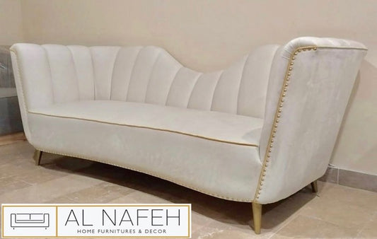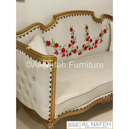 3 seater sofa in white and gold combination