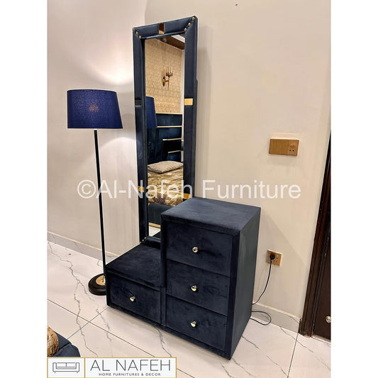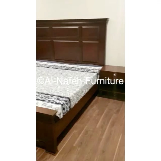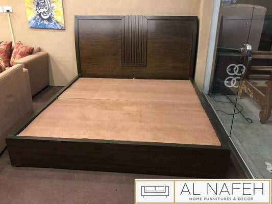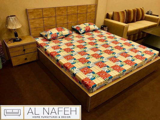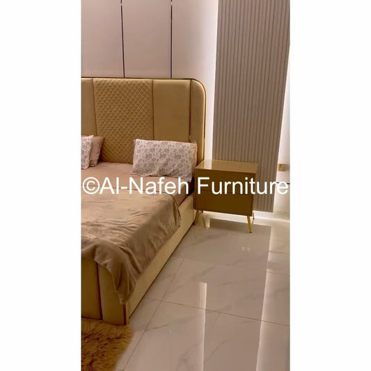 Low profile checkered and lining design bedset in diyar colour with 2 side tables, Dressing and mirror