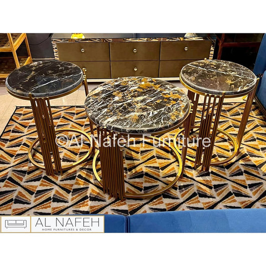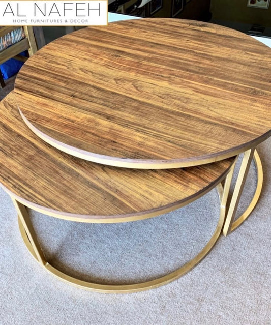 Nest of Centre Tables with a combination of Wooden Top and Metal Structure