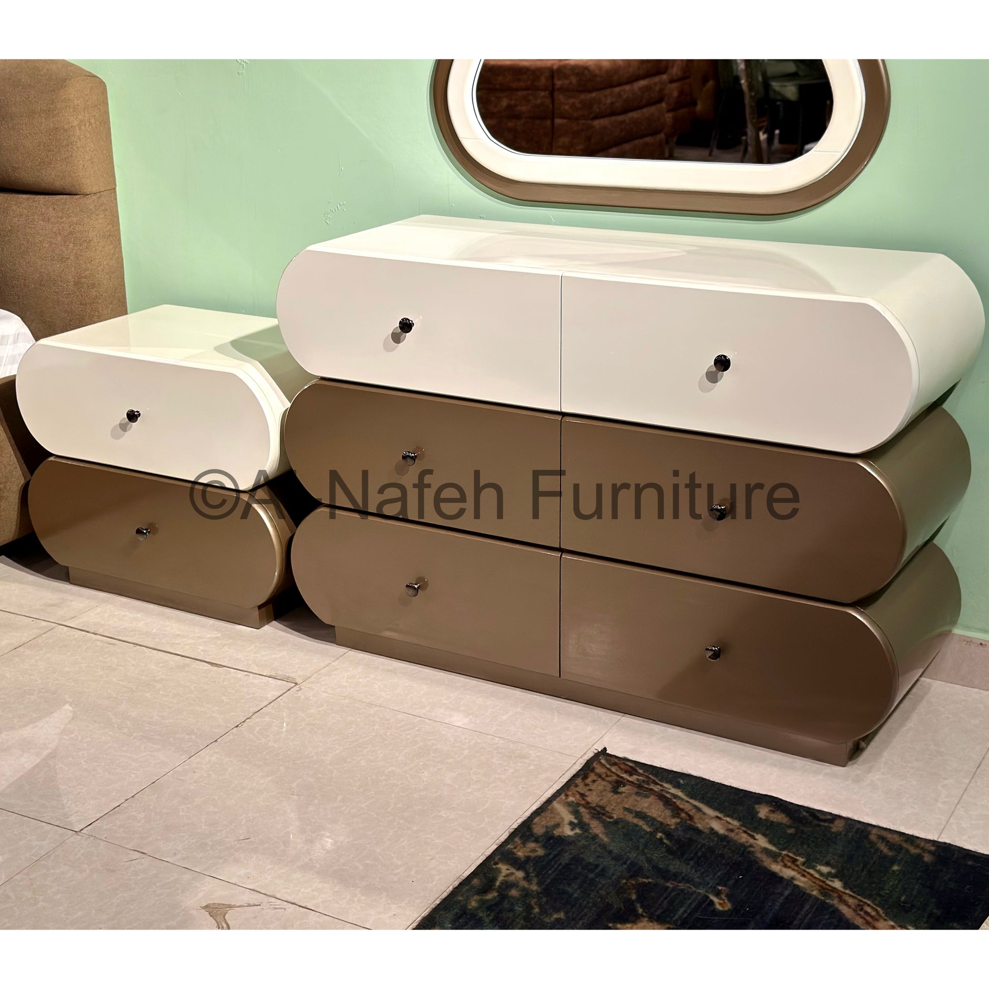 Material: High Gloss side tables & dressing